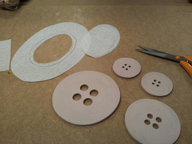 The buttons, now with a primer coat of paint, and the parts of a hat